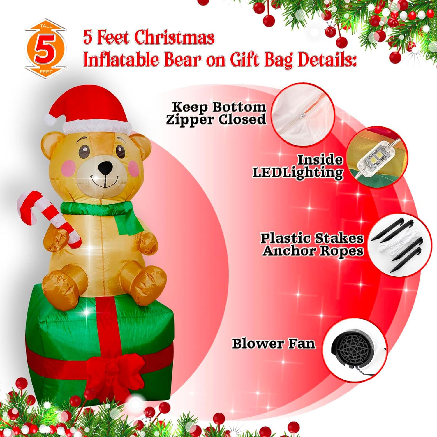 🎄 Perfect for families, bear lovers, and anyone looking to add something a little different to their Christmas décor, this Bear on Gift Inflatable pairs beautifully with other festive characters and makes a delightful centrepiece for any display.
