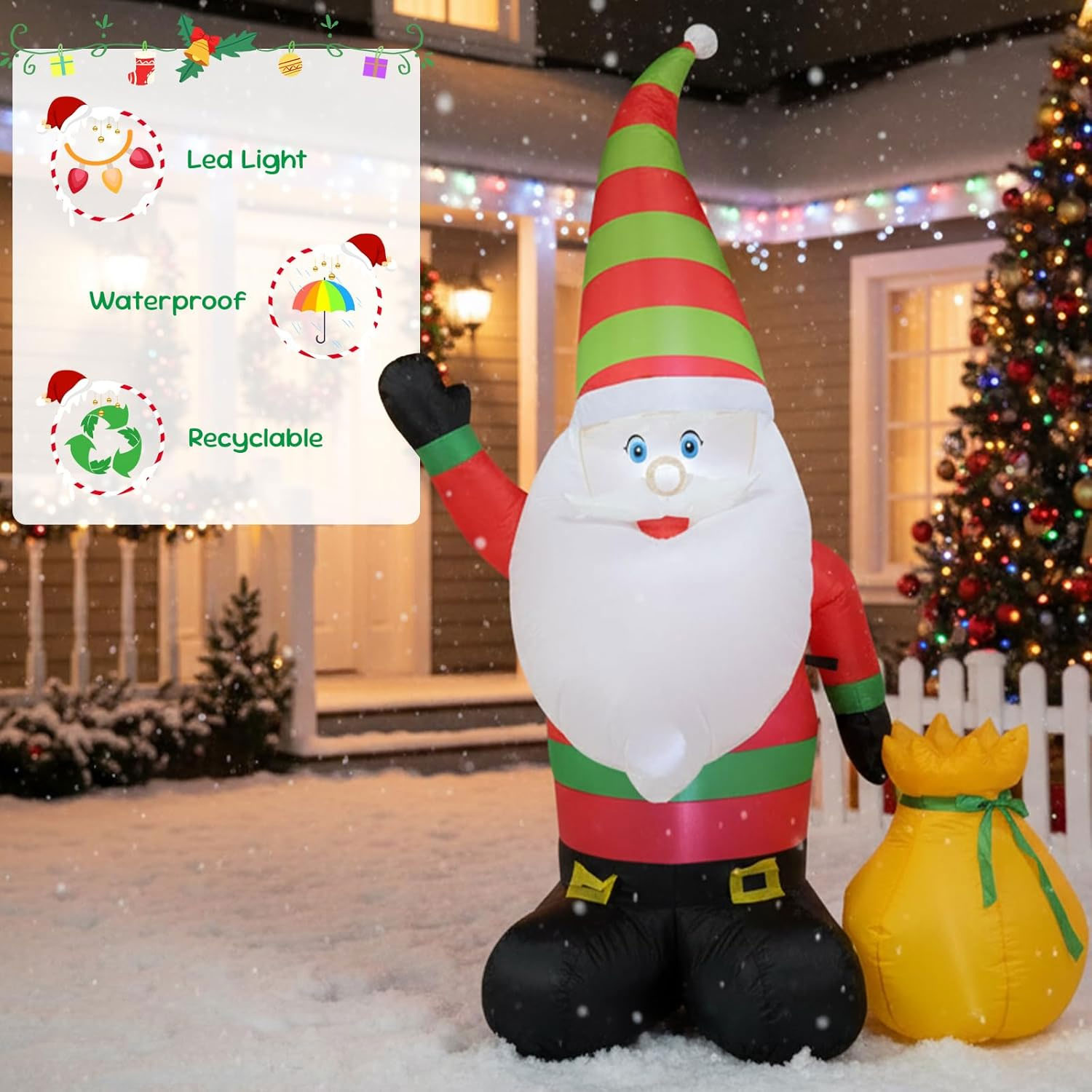 1.8m tall Christmas gnome inflatable