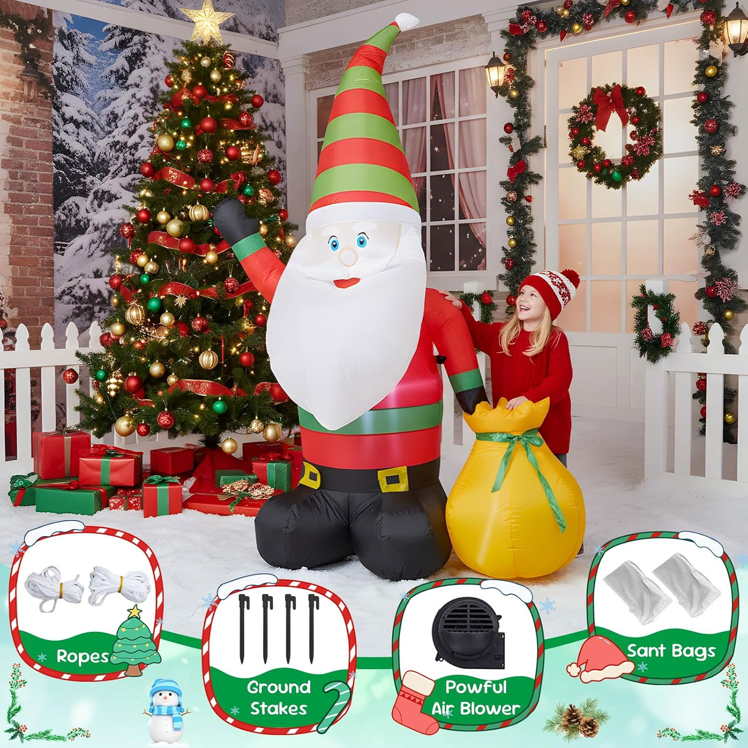 🎁 Perfect for homes, shopfronts, schools, and community displays, this Christmas Gnome with Sack Inflatable is a timeless festive favourite that pairs beautifully with Santas, reindeer, and other Christmas characters.