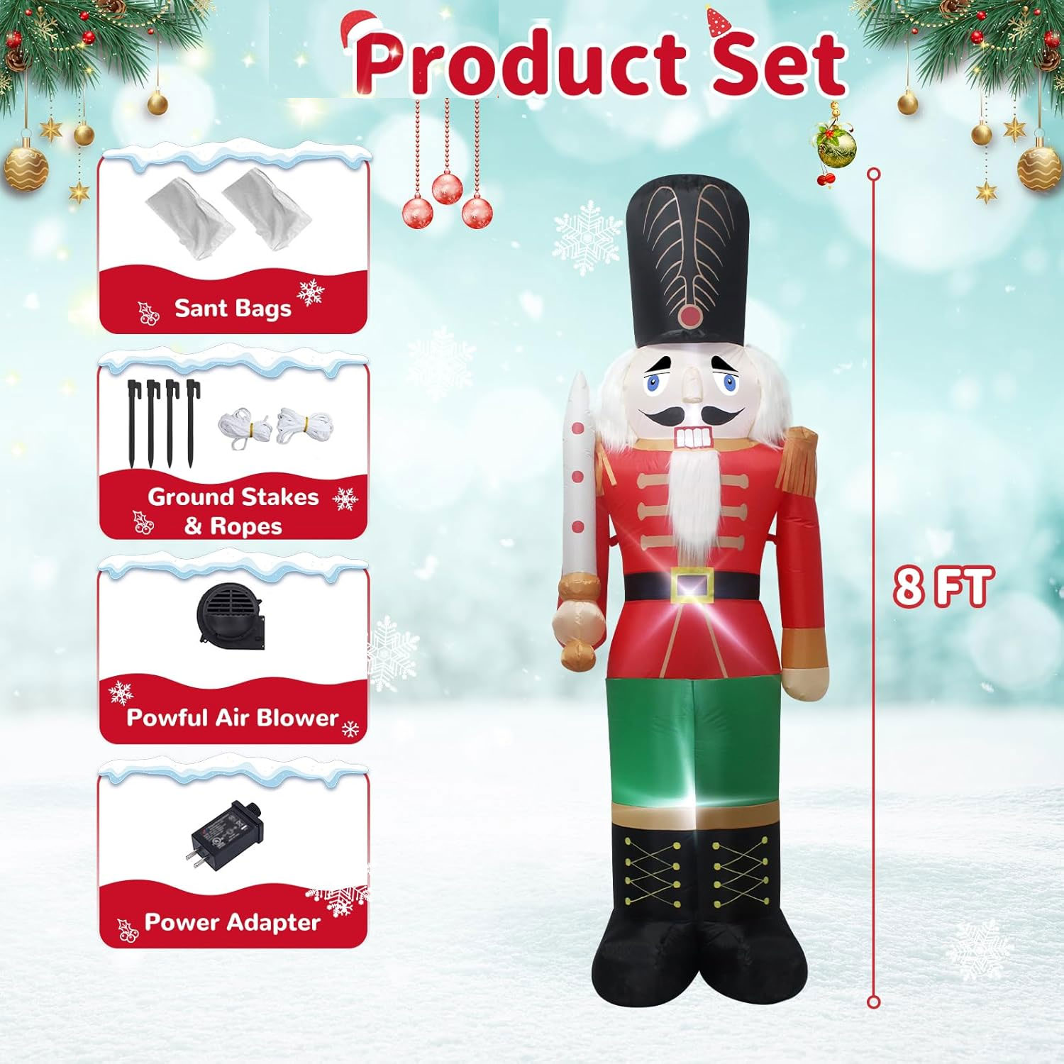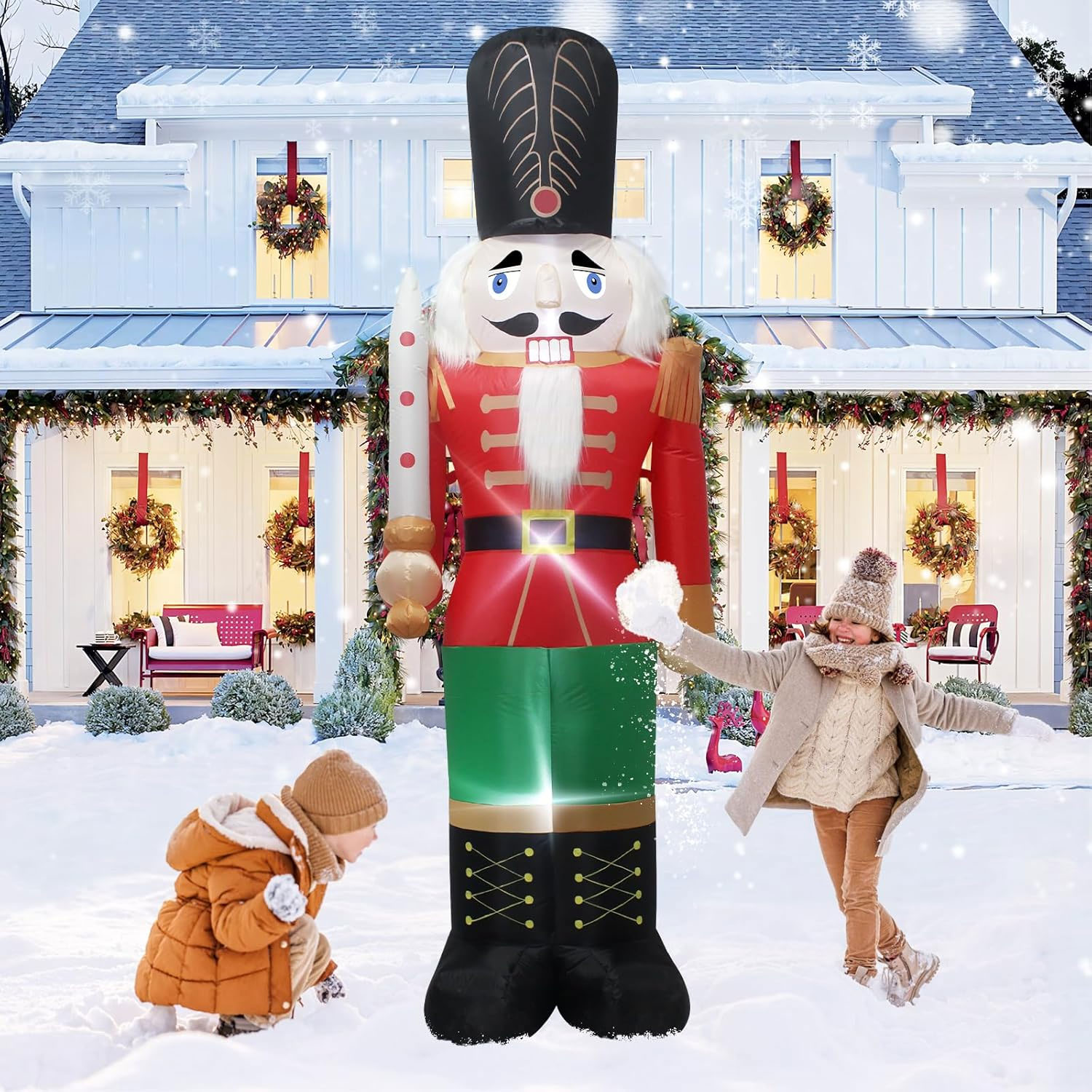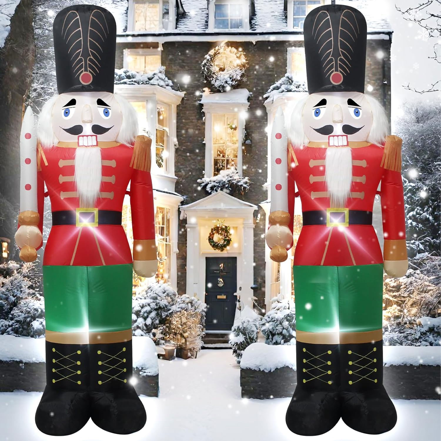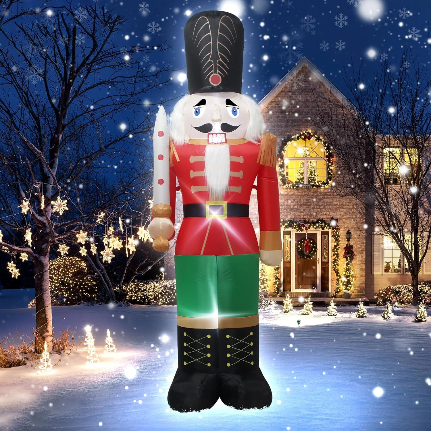 Perfect as a front-yard centrepiece, entryway feature or commercial display, this oversized inflatable commands attention both day and night. Built-in LED lighting illuminates the nutcracker beautifully after dark, creating a striking and festive presence that’s sure to impress visitors and passers-by.